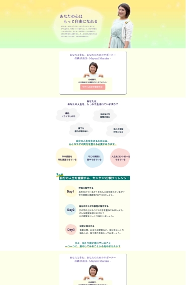 自分自身と商品への理解が深まるところが とても良かったです。 またWeb集客の土台、常に発信できる場所が できることでの安心感(サービス提供側に依存されない) 追加修正なども柔軟に対応してくださる点も 非常に助かります。